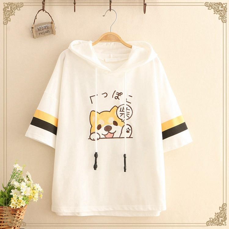 森ガール 半袖 パーカー ワンちゃん 柴犬 イラスト フードに耳付き レディース Sy みどりショップ 通販 Yahoo ショッピング